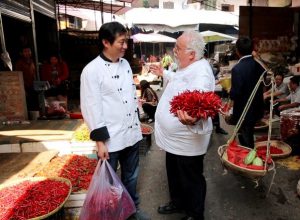 Chef Staib and Victoria Cruise Lines’ Executive Chef Chen Gang demonstrate how to incorporate exotic Chinese ingredients picked up at a local market to spice up traditional Western dishes